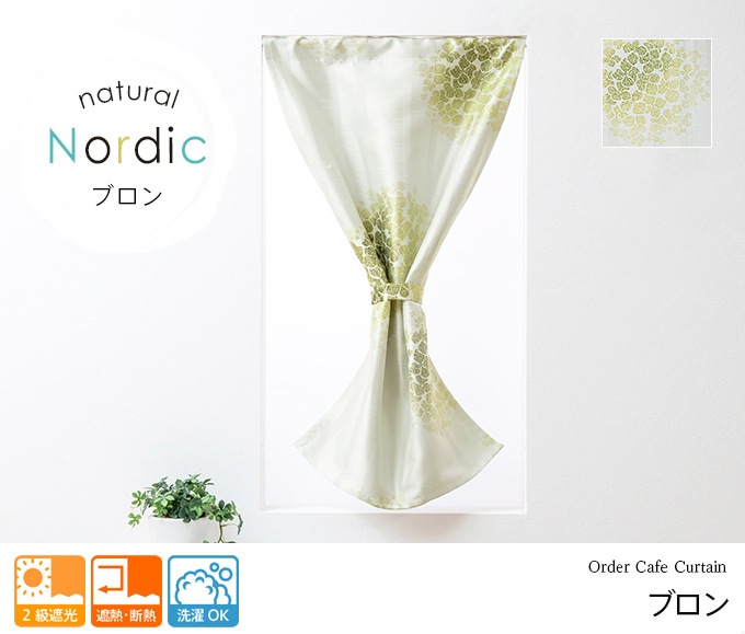 ナチュラル ノルディック ブロン(グリーン) オーダーカフェカーテン/2級遮光 遮熱・断熱 洗濯OK 日本製