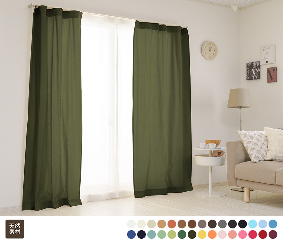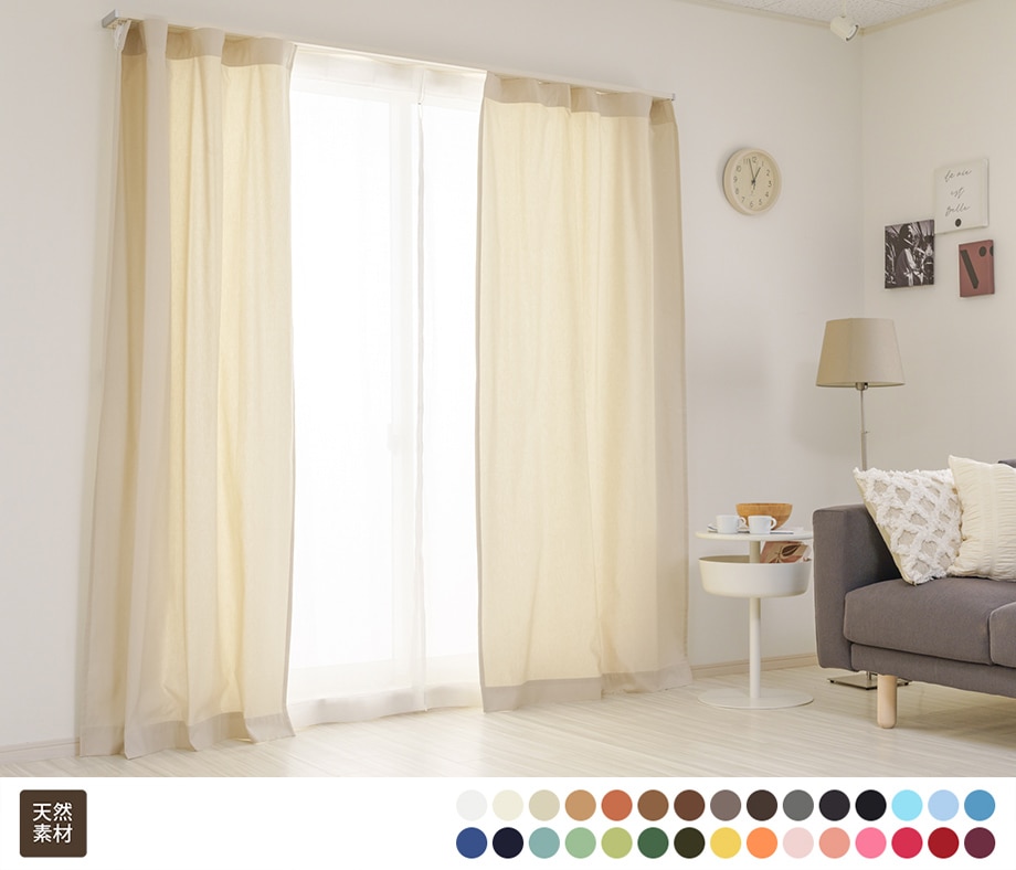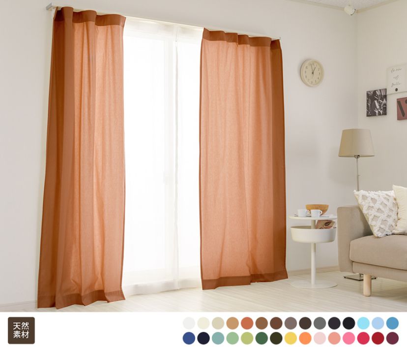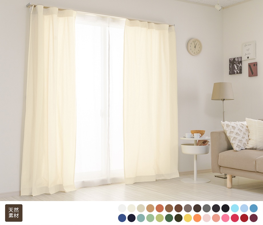 綿(コットン)100% 無地 さらっとした触り心地のオックス織り天然素材カーテン ナチュラル