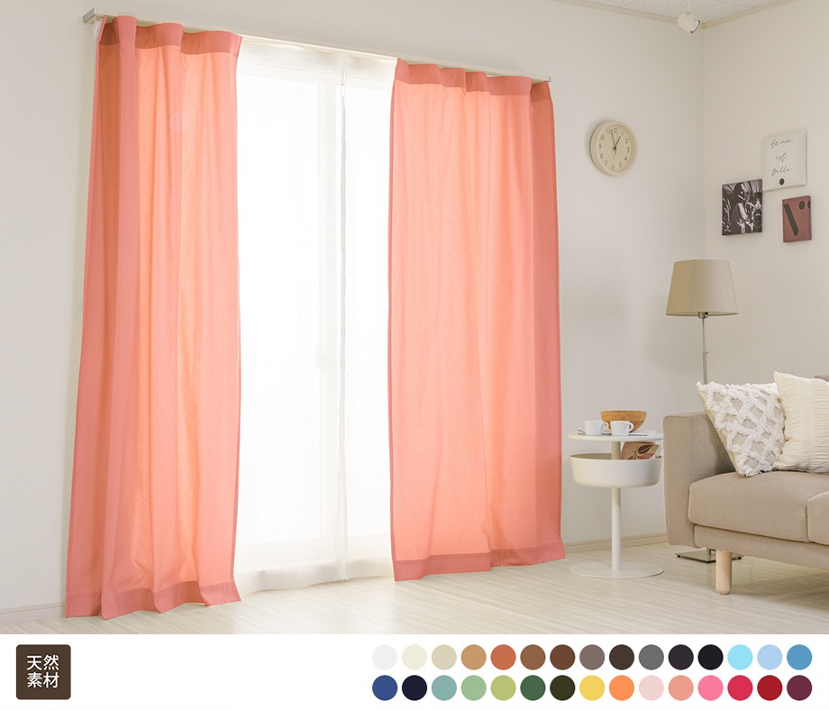 綿(コットン)100% 無地 さらっとした触り心地のオックス織り天然素材カーテン サーモンピンク