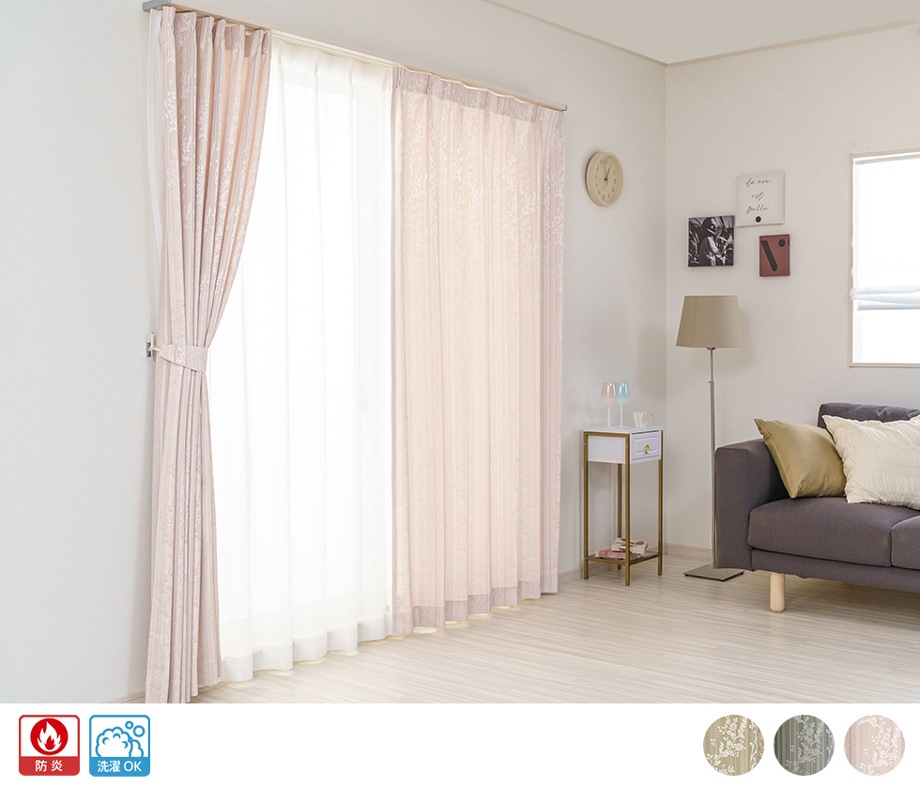 優雅なオーナメント柄をジャガード織りで表現したドレープカーテン「プリマヴェーラ」ピンク