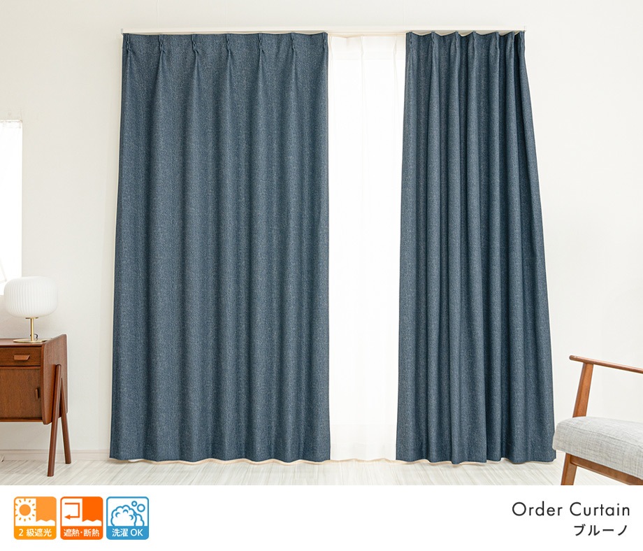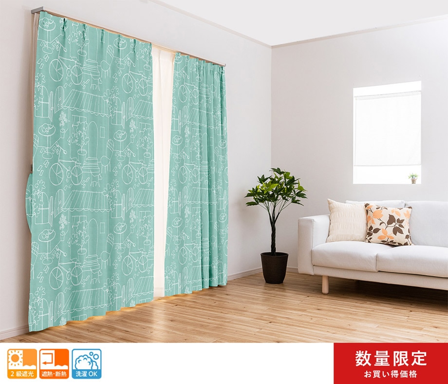 数量限定でお買い得価格の2級遮光カーテン「マルシェ」(ブルー)