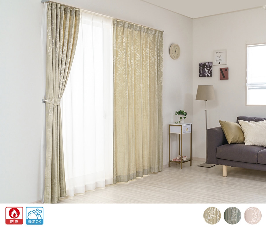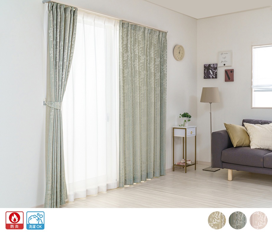 ジャガードで織りなす美しいデザインの防炎ドレープカーテン「ブルーミング」(ナチュラル)