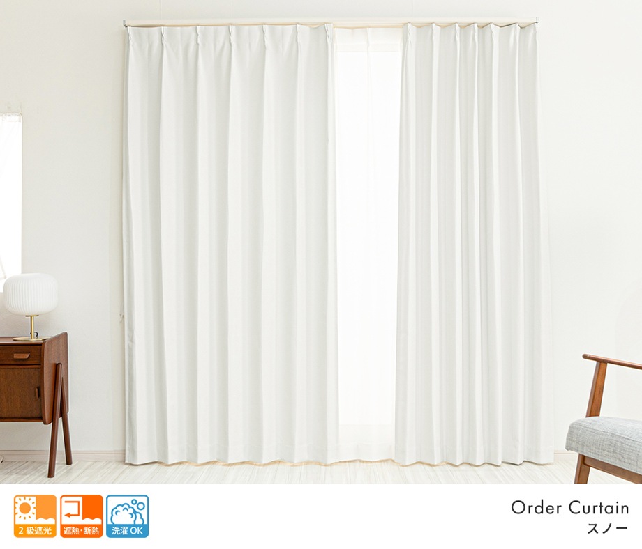 くすみのない明るいホワイトの2級遮光カーテン「スノー」ホワイト