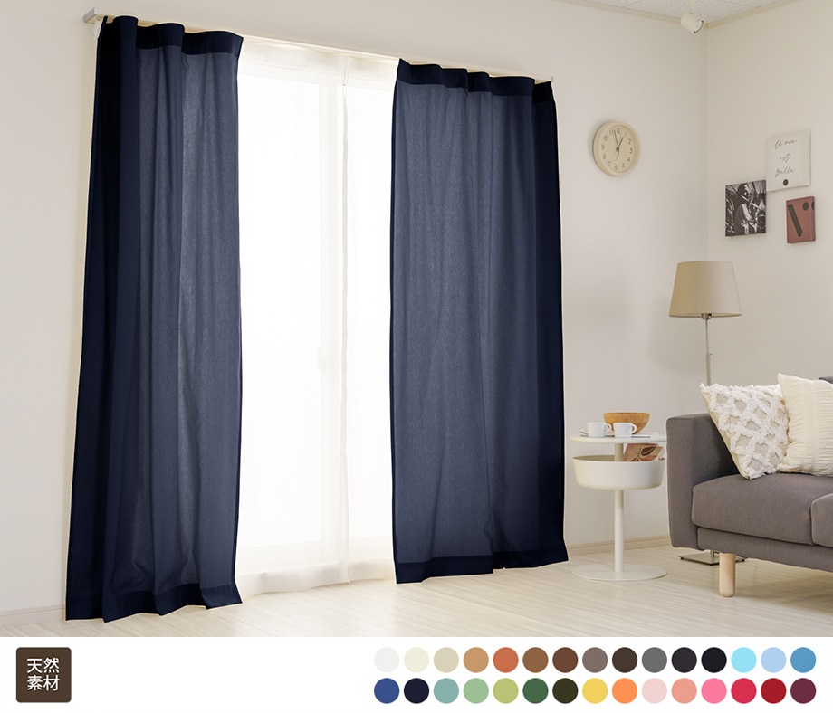 綿(コットン)100% 無地 さらっとした触り心地のオックス織り天然素材カーテン ネイビー