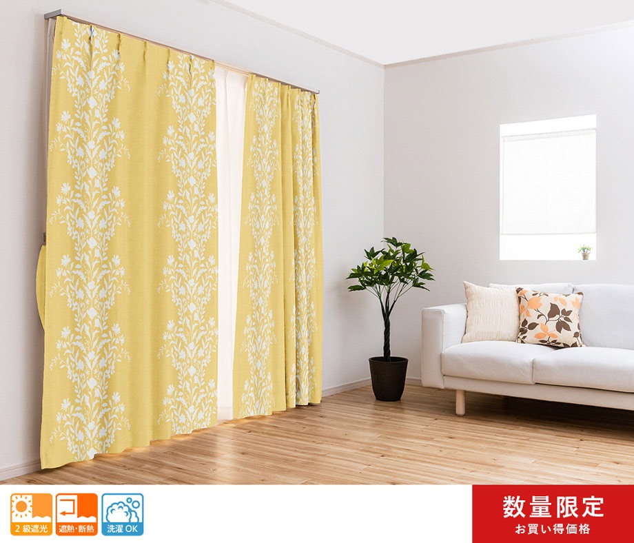 数量限定でお買い得価格の2級遮光カーテン「リッカ」(イエロー)