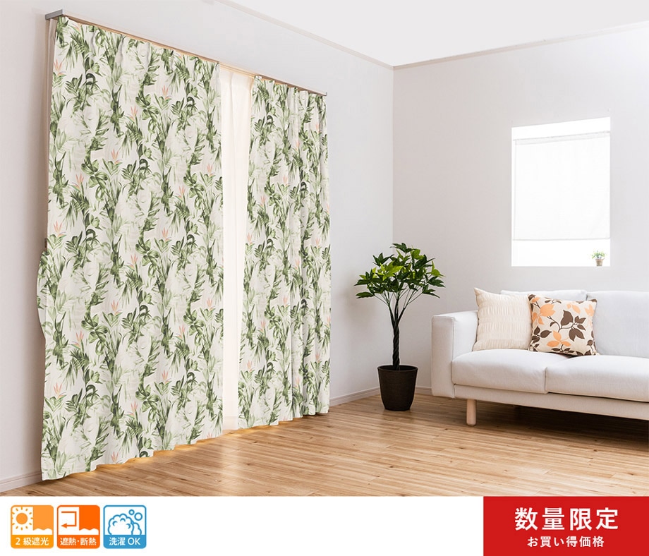 数量限定でお買い得価格の2級遮光カーテン「マカナ」(グリーン)