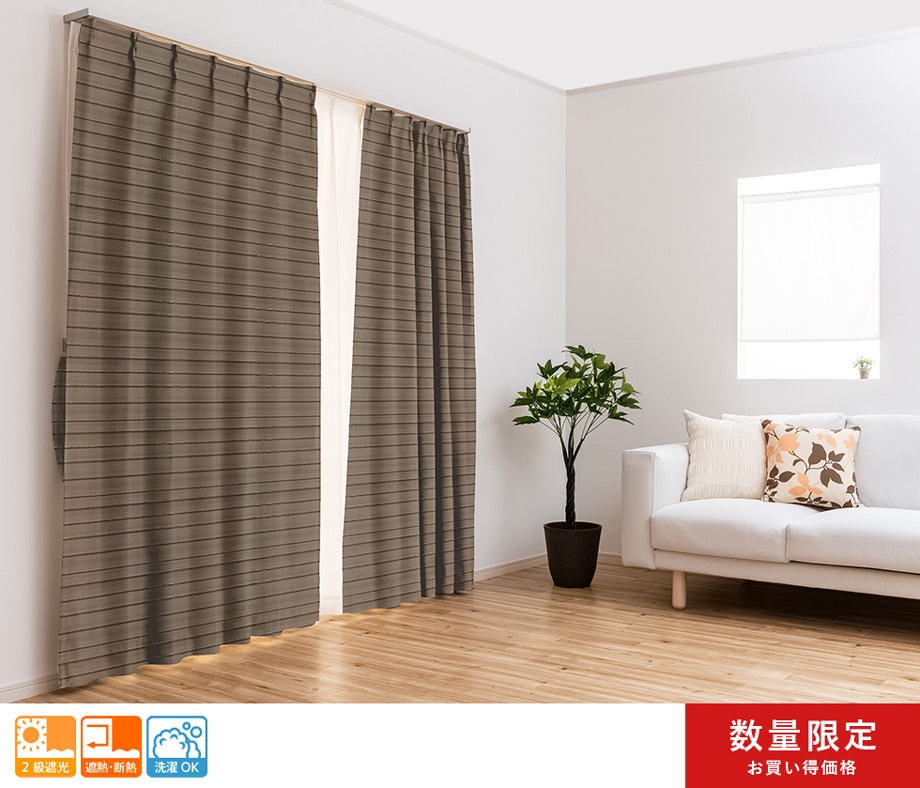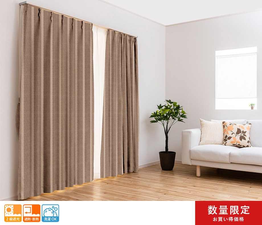 数量限定でお買い得価格の2級遮光カーテン「ノウル」(ブラウン)