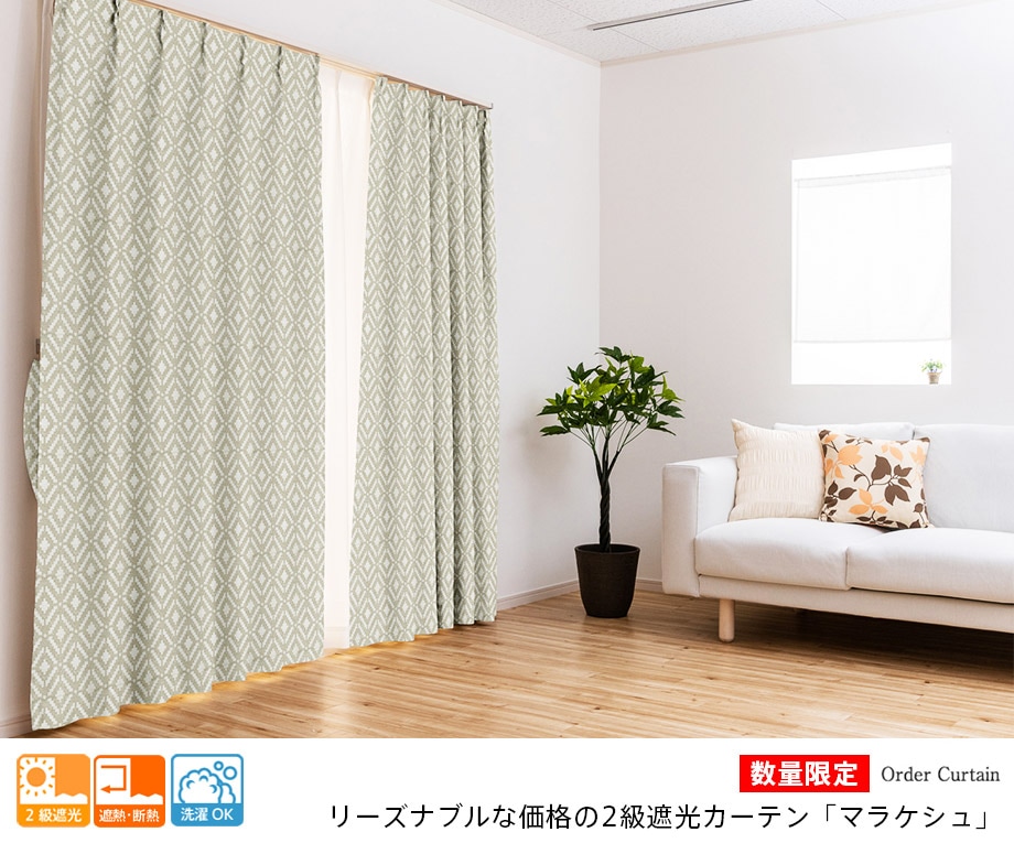 数量限定でお買い得価格の2級遮光カーテン「マラケシュ」(ベージュ)