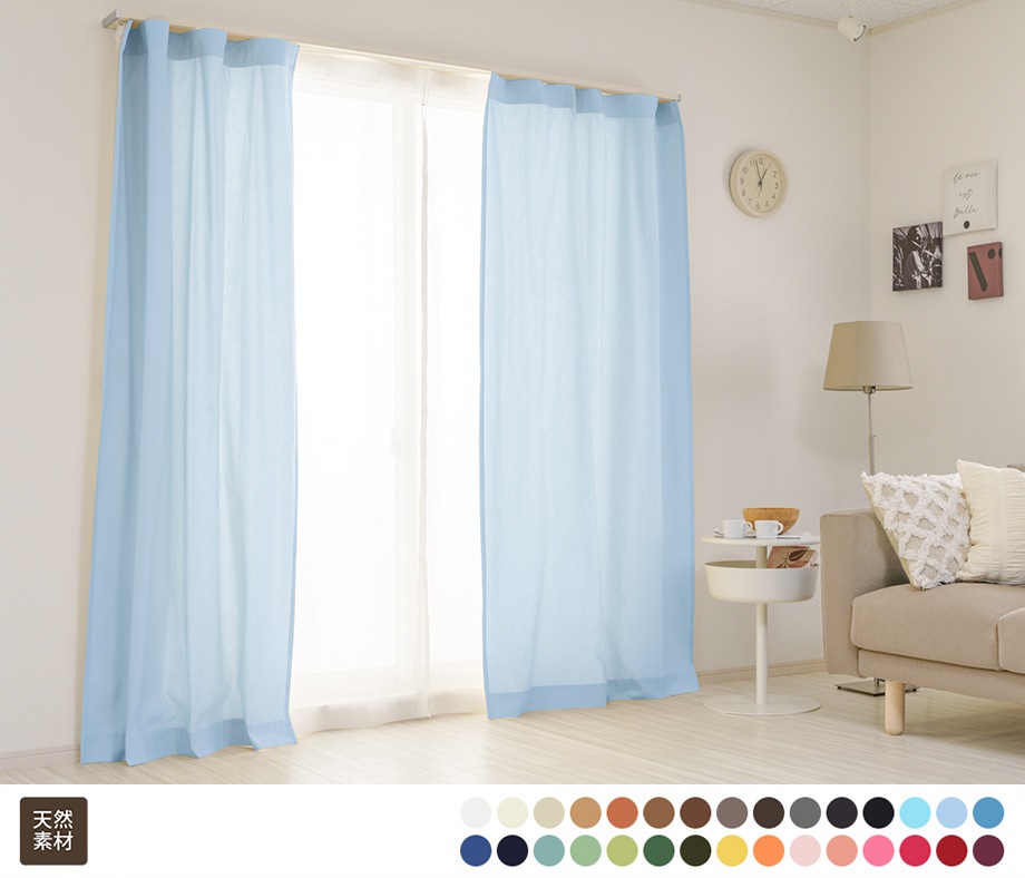 綿(コットン)100% 無地 さらっとした触り心地のオックス織り天然素材カーテン レイクブルー