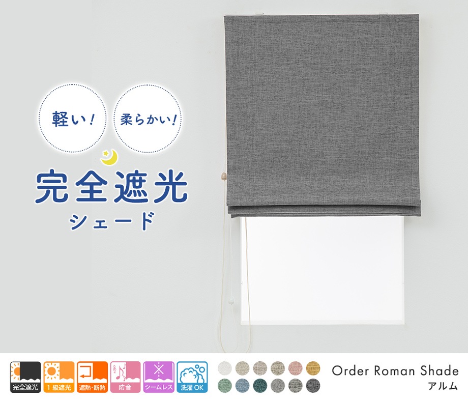 【幕体のみ】3層構造で軽く柔らかい完全遮光ローマンシェード「アルム」ダークグレー【買い替え用】