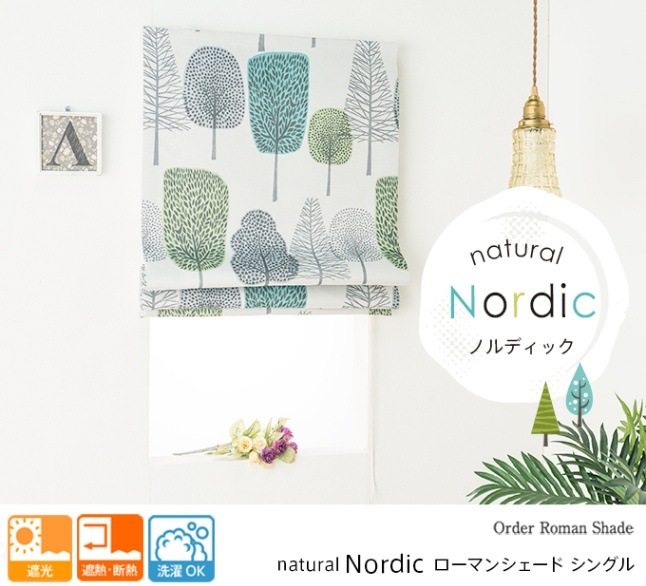 北欧をイメージしたオーダー遮光ローマンシェード「ナチュラル ノルディック」シングル/遮光 遮熱・断熱 洗濯OK 日本製