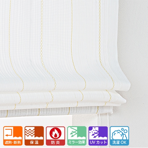 【幕体のみ】リーフ柄ストライプのUVカットミラーレースローマンシェード「リッジ」ホワイト【買い替え用】