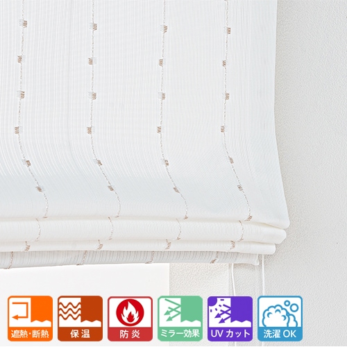 【幕体のみ】四角いドット柄の防炎UVカットミラーレースローマンシェード「ビット」ナチュラル【買い替え用】