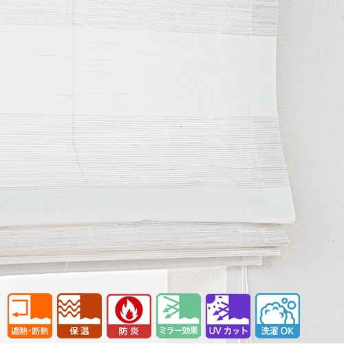 【幕体のみ】細かいチェック柄の防炎UVカットミラーレースローマンシェード「ビリオン」ホワイト【買い替え用】
