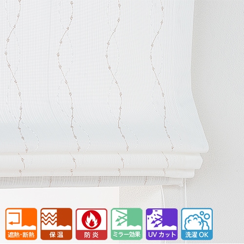 【幕体のみ】エレガントなスパイラルデザインの防炎UVカットミラーレースローマンシェード「パール」【買い替え用】