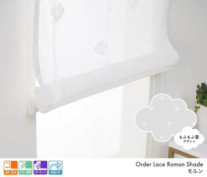 【幕体のみ】可愛い雲デザインの遮熱ミラーレースローマンシェード「モルン」ホワイト【買い替え用】