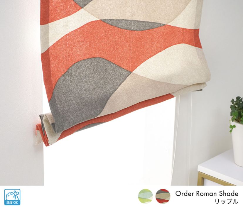 鮮やかなカラーリングのウェーブ柄プリントローマンシェード「リップル」レッド