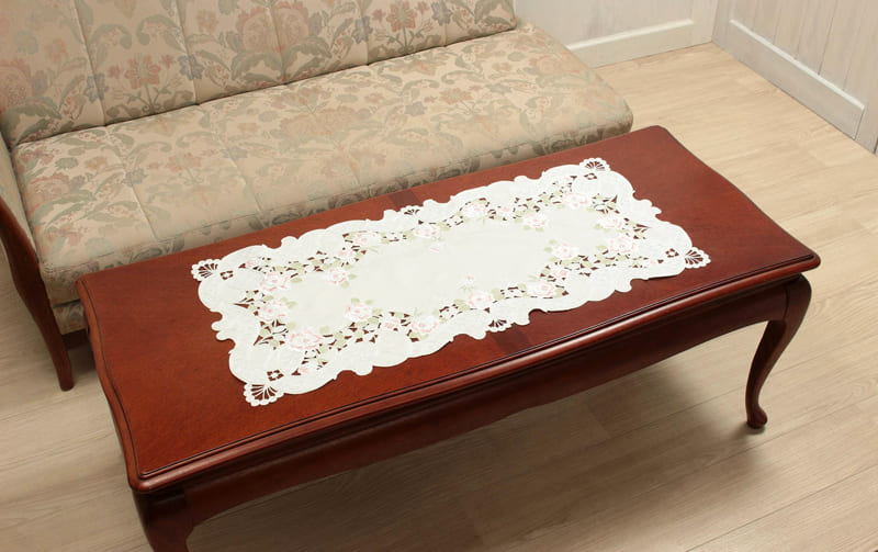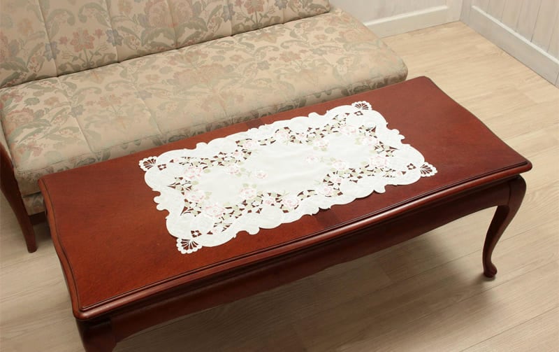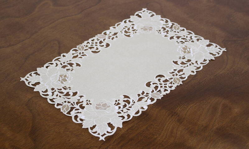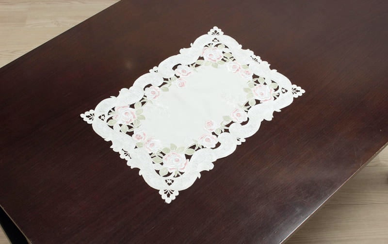 カットワーク刺繍 テーブルセンター 約30×45cm [Pure Rosa]