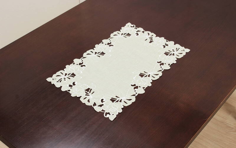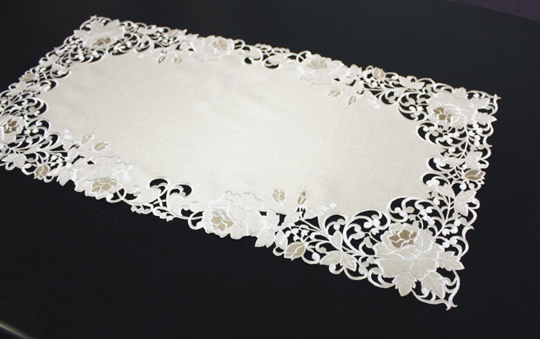 カットワーク刺繍 テーブルセンター 約30×45cm [Rose Metopes]