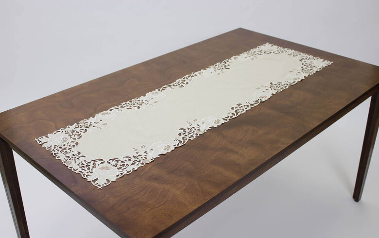 カットワーク刺繍 テーブルセンター 約40×150cm [Rose Metopes]
