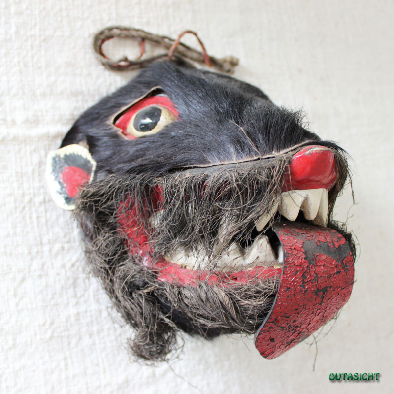 木彫りマスク (お面) 髭付 ヴィンテージ ネパール NAM-12