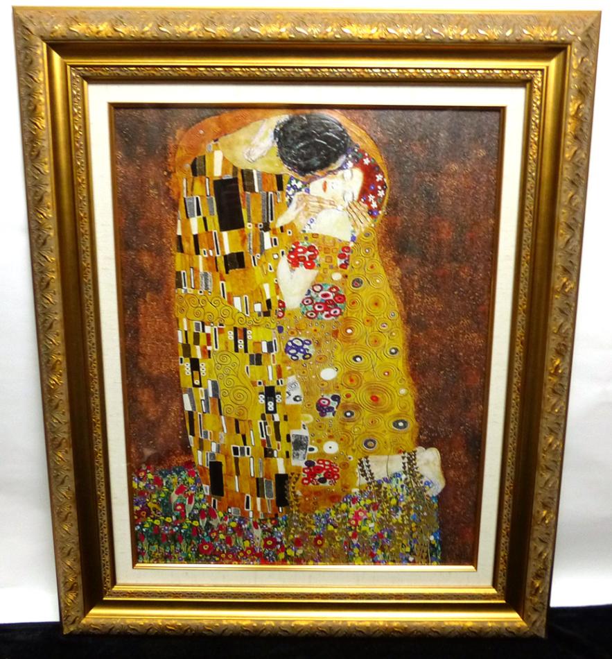 グスタフ・クリムト「接吻」10号/P10 立体複製名画 /豪華額装(ジクレー+油彩画風直筆仕上げ)【中古】【送料無料】