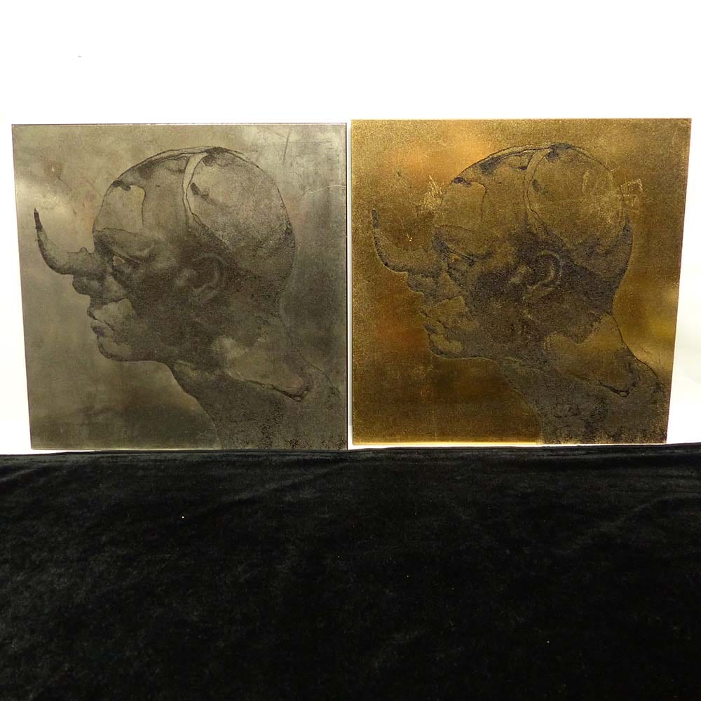 作者詳細不明 / 現代工芸品 / 角あり横顔 / 金銀2枚セット / オブジェ / 店舗什器 / 現代アート【中古】【送料無料...