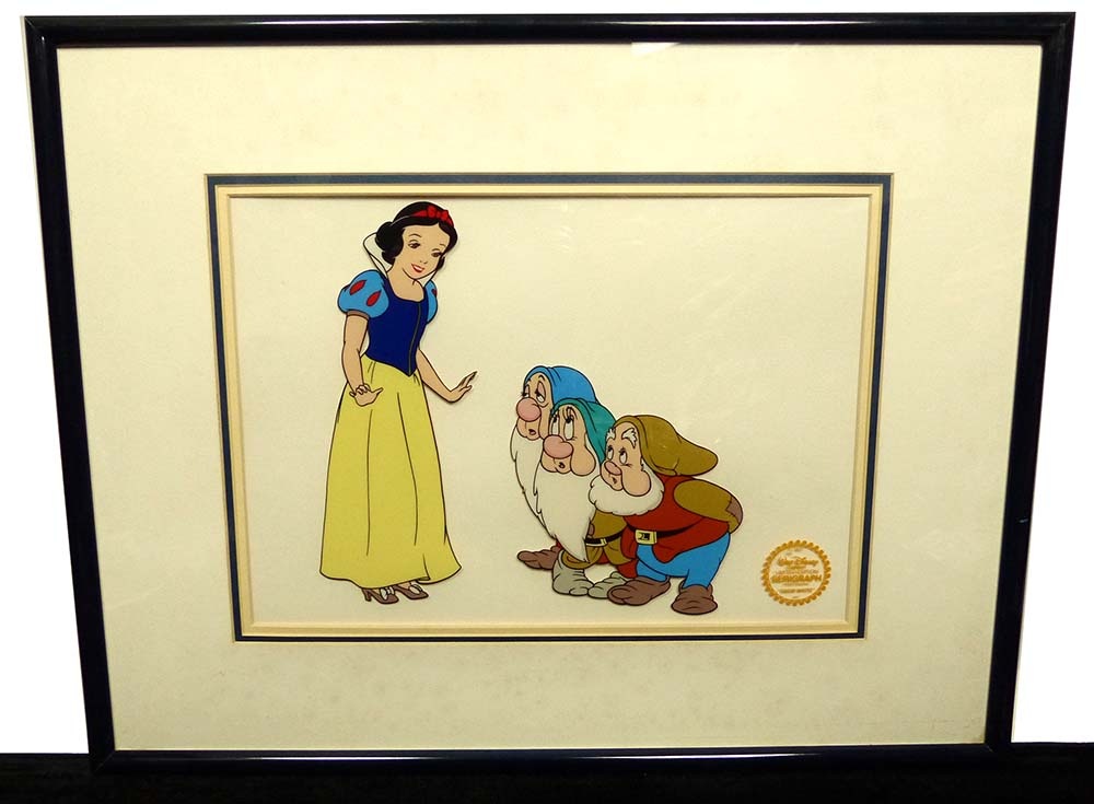 【希少】Walt Disney /ウォルト・ディズニー 「白雪姫と小人達」セリグラフ セル画 証明シール 額装【中古】【送料無料】