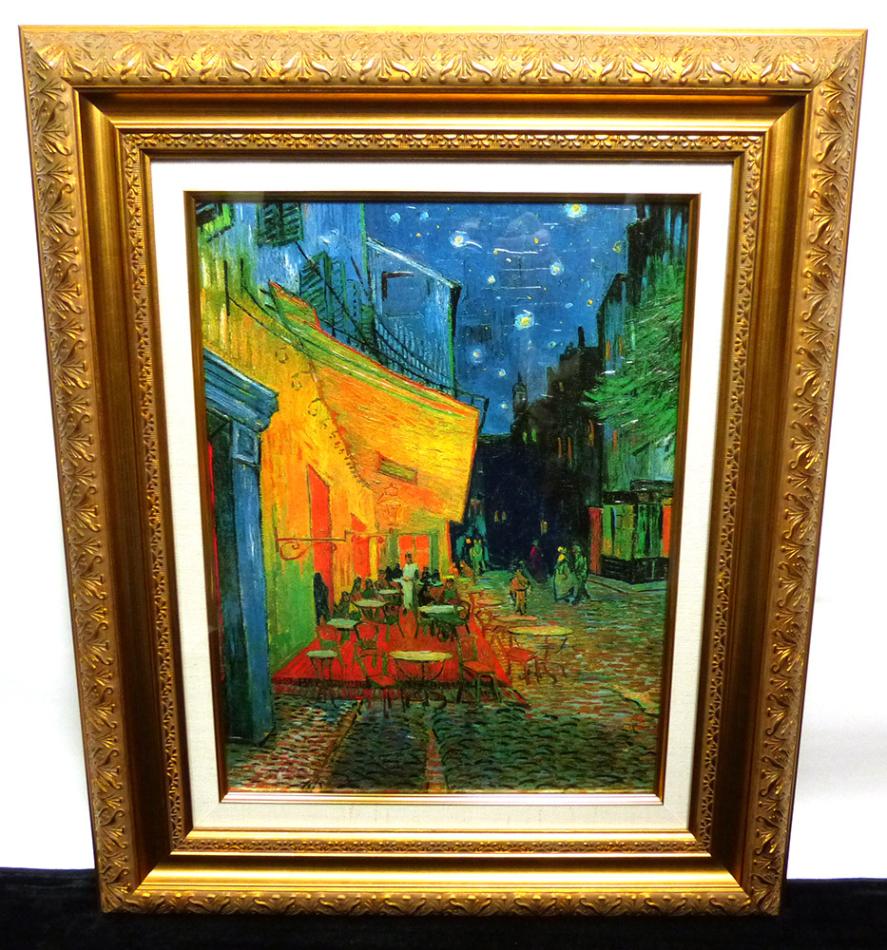 ゴッホ「夜のカフェテラス」6号 立体複製名画 /豪華額装(ジクレー+油彩画風直筆仕上げ)【中古】【送料無料】