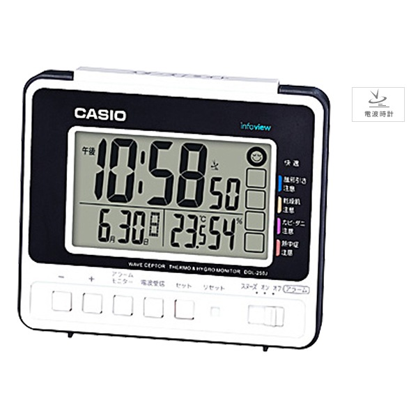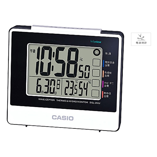 [DQL-260J-7JF] 目覚まし電波時計 温度/湿度/日付表示付き