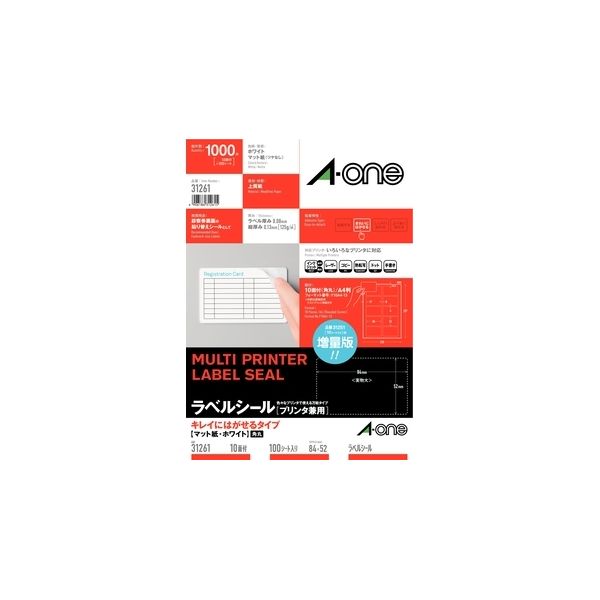 A-one エーワン 31261 ラベルシール[プリンタ兼用]再剥離10面