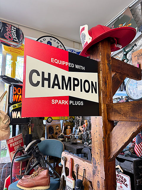 チャンピオン サイド看板 両面プリント フランジメタルサイン スパークプラグ