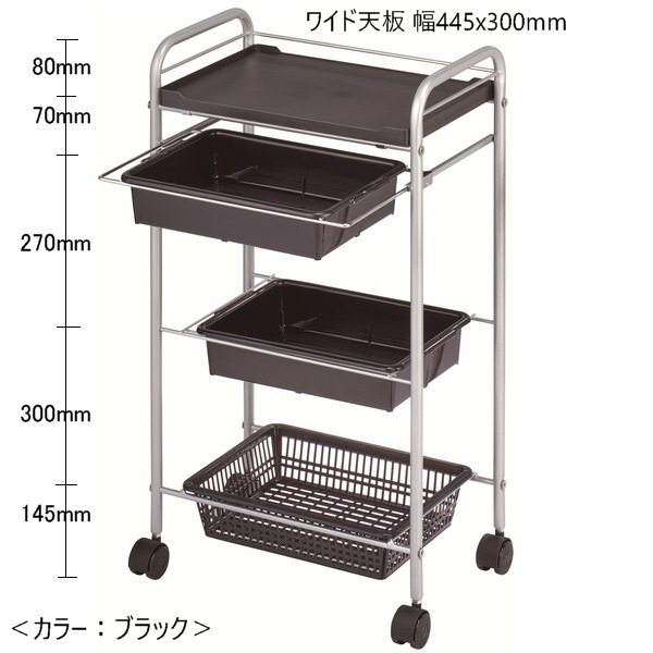 美容室トロリーワゴン C-316 日本製 収納ワゴン 6段 ブラックのみ シルバー塗装 トローリーワゴン