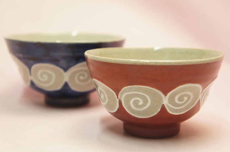 砥部焼・梅山窯・くらわんか茶碗(大)朱笹