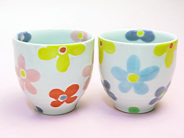 砥部焼 梅山窯 丸湯呑み(たんぽぽ)