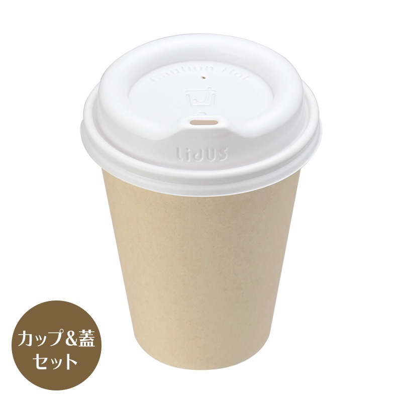 紙コップ蓋付 8オンス PLAバガスカップ ナチュラル LidUS トラベラーリッド 白蓋 100個セット