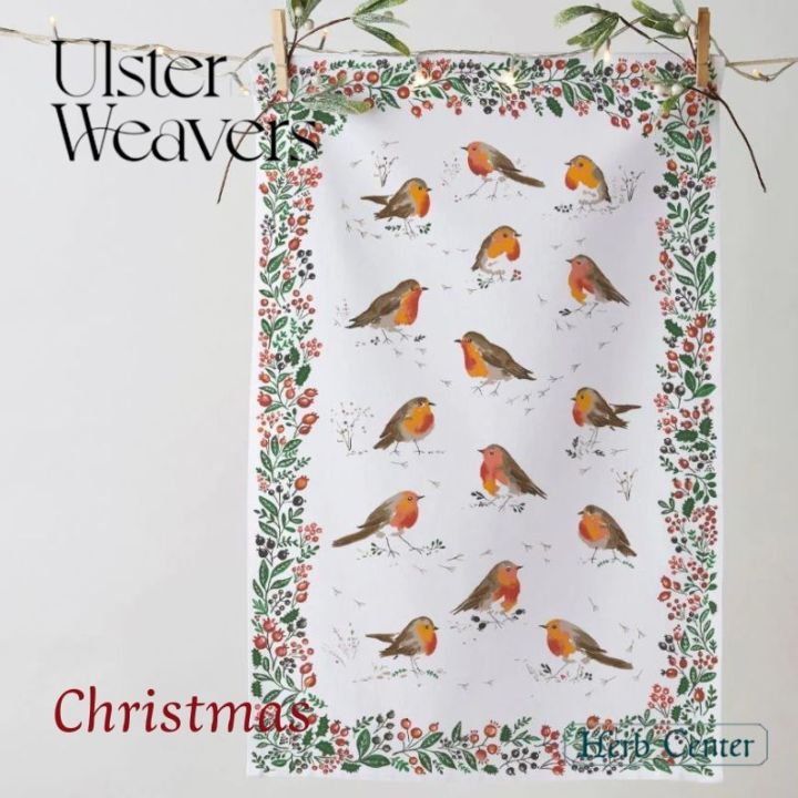 アルスターウィーバーズ コットンティータオル Robins & Berry Border ロビンズ&ベリーボーダー コマドリ