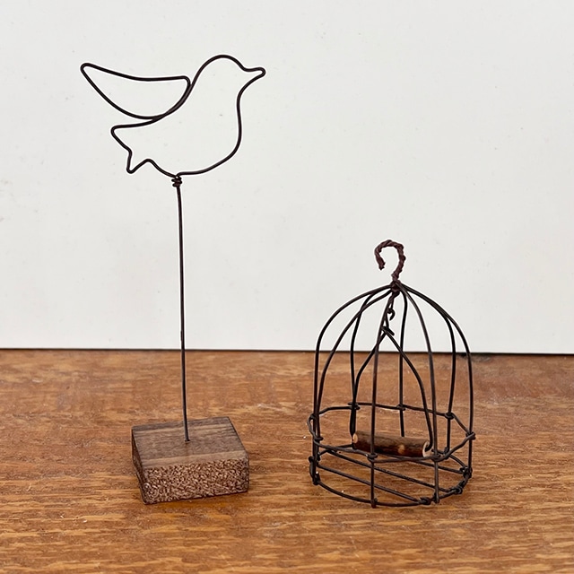 ワイヤーオブジェ 鳥カゴと小鳥