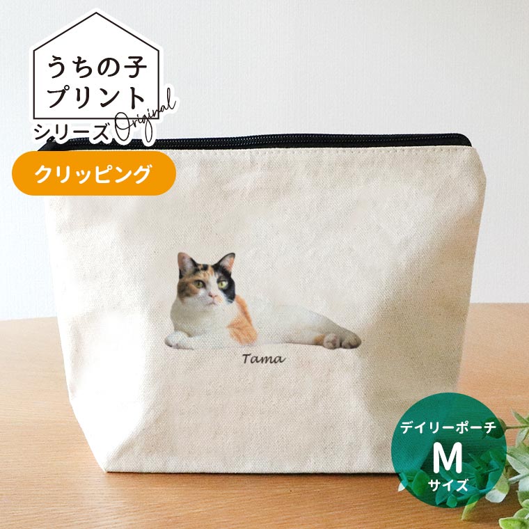 うちの子プリントシリーズ クリッピング デイリーポーチ ナチュラルカラー Mサイズ アンシャンテラボ / ポーチ オリジナルポーチ...
