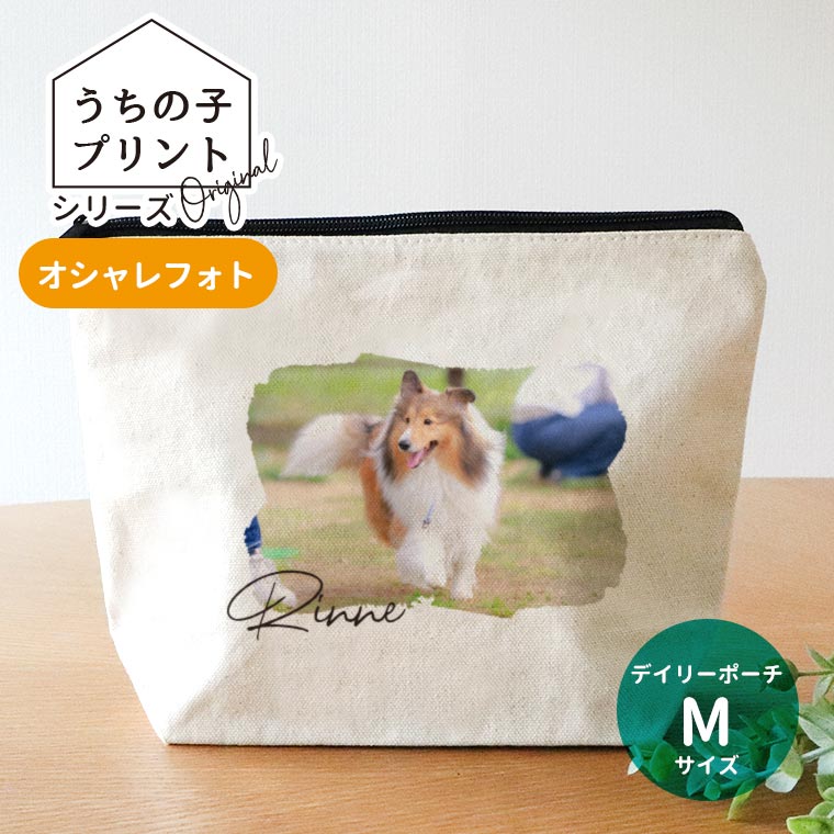 うちの子プリントシリーズ オシャレフォト デイリーポーチ ナチュラルカラー Mサイズ アンシャンテラボ / ポーチ オリジナルポー...
