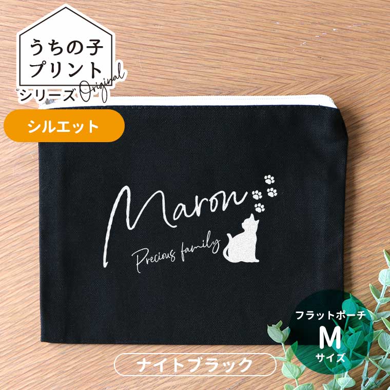 うちの子プリントシリーズ シルエット フラットポーチ ナイトブラック Mサイズ アンシャンテラボ / ポーチ オリジナルポーチ オ...