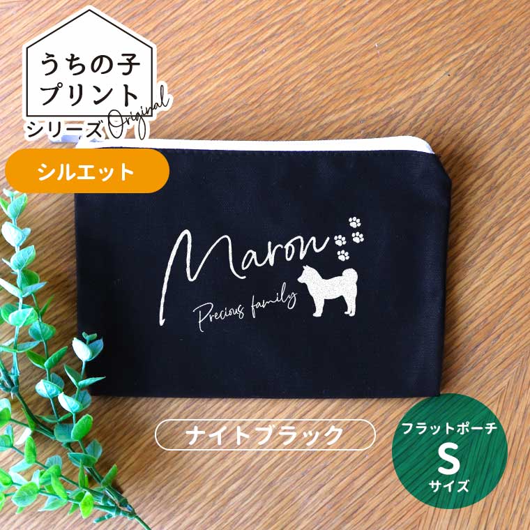 うちの子プリントシリーズ シルエット フラットポーチ ナイトブラック Sサイズ アンシャンテラボ / ポーチ オリジナルポーチ オ...