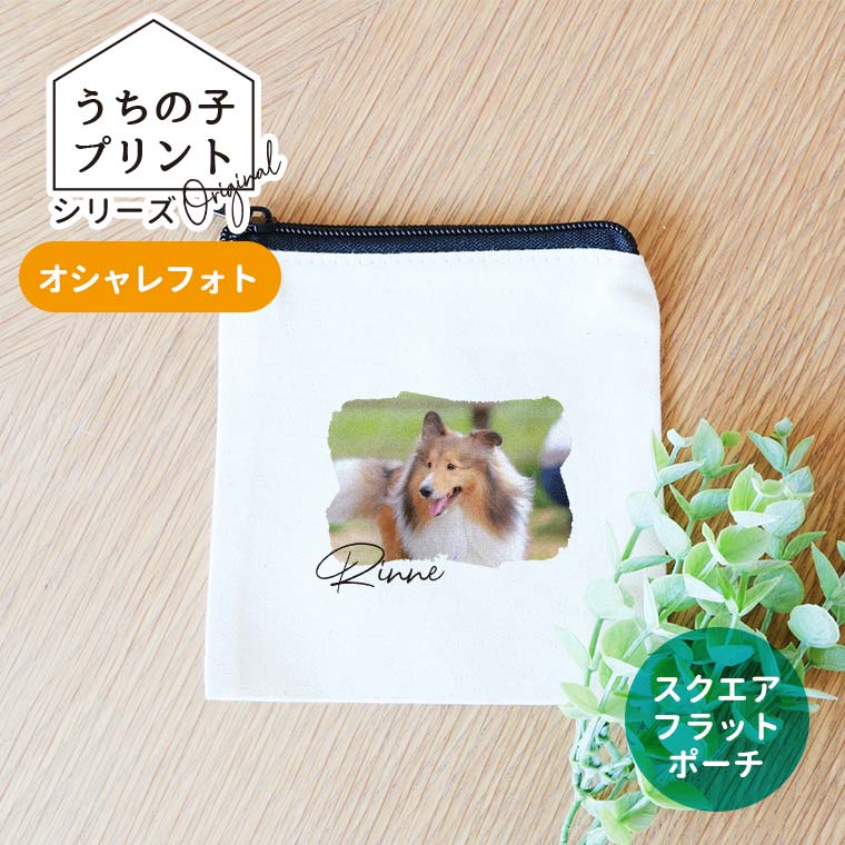 うちの子プリントシリーズ オシャレフォト スクエアスクエアフラットポーチ ナチュラル アンシャンテラボ / ポーチ オリジナルポー...