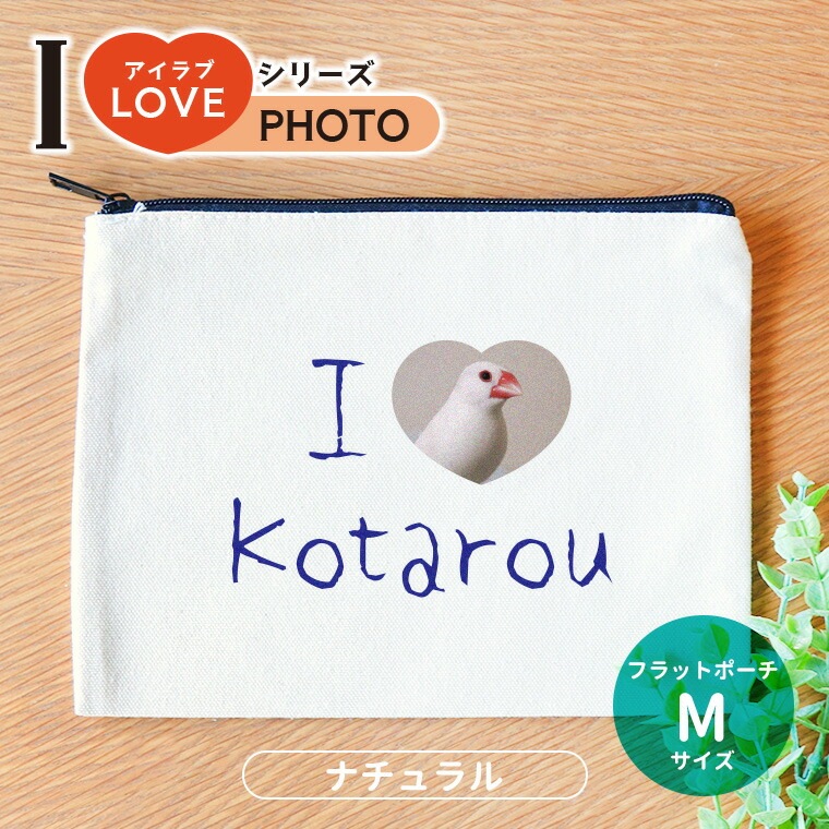 アイラブ フォト フラットポーチ ナチュラル Mサイズ アンシャンテラボ / オリジナル商品 オリジナルポーチ love 写真 印...