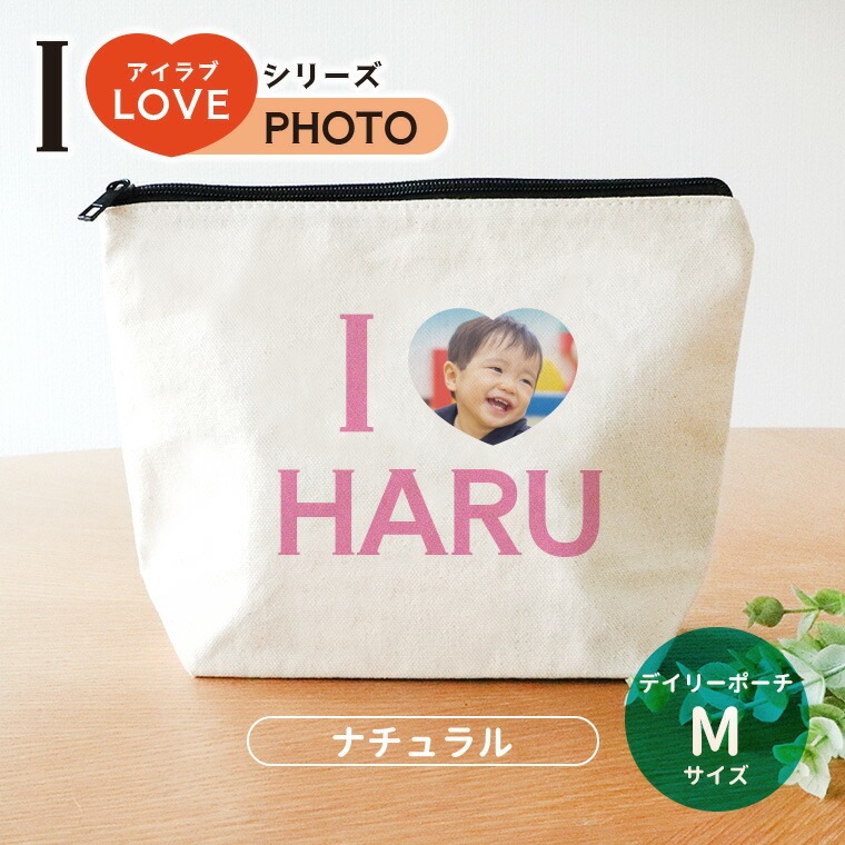 デイリーポーチ ナチュラル Mサイズ アイラブシリーズ フォト アンシャンテラボ / オリジナルポーチ love 写真 印刷 ペッ...