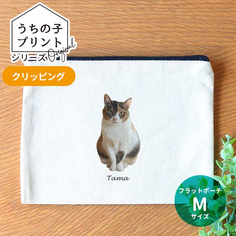 うちの子プリントシリーズ クリッピング フラットポーチ ナチュラルカラー Mサイズ アンシャンテラボ / ポーチ オリジナルポーチ...
