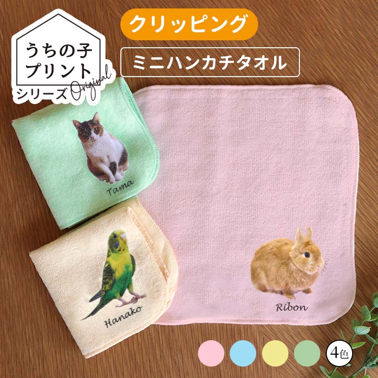 うちの子プリントシリーズ クリッピングミニハンカチタオル 全4色 20cm×20cm アンシャンテラボ / ハンドタオル ミニタオ...