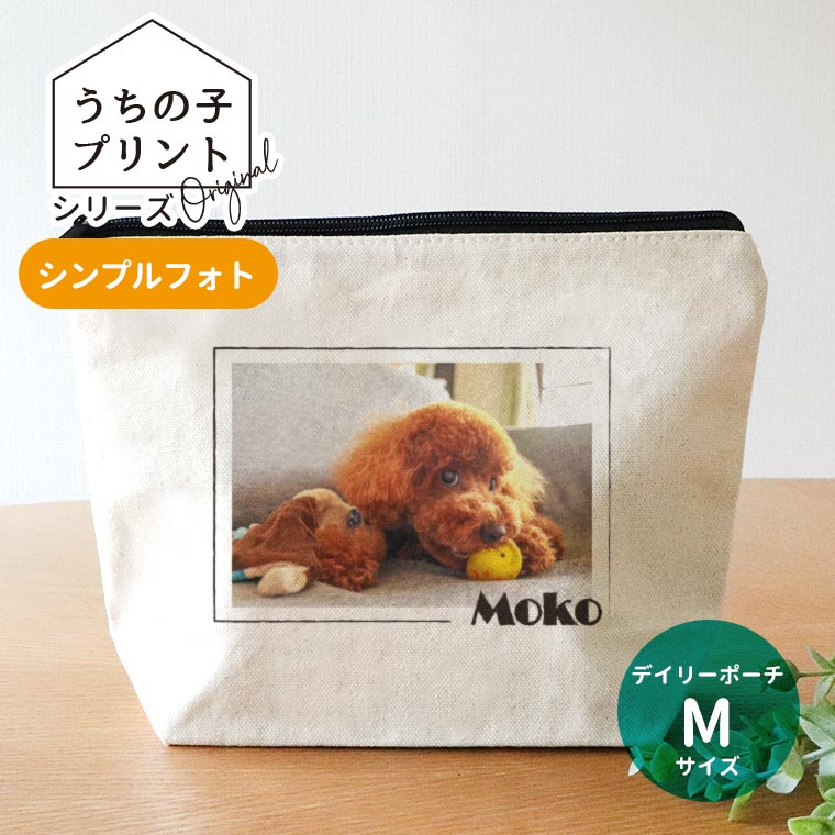 うちの子プリントシリーズ シンプルフォト デイリーポーチ ナチュラルカラー Mサイズ アンシャンテラボ / ポーチ オリジナルポー...