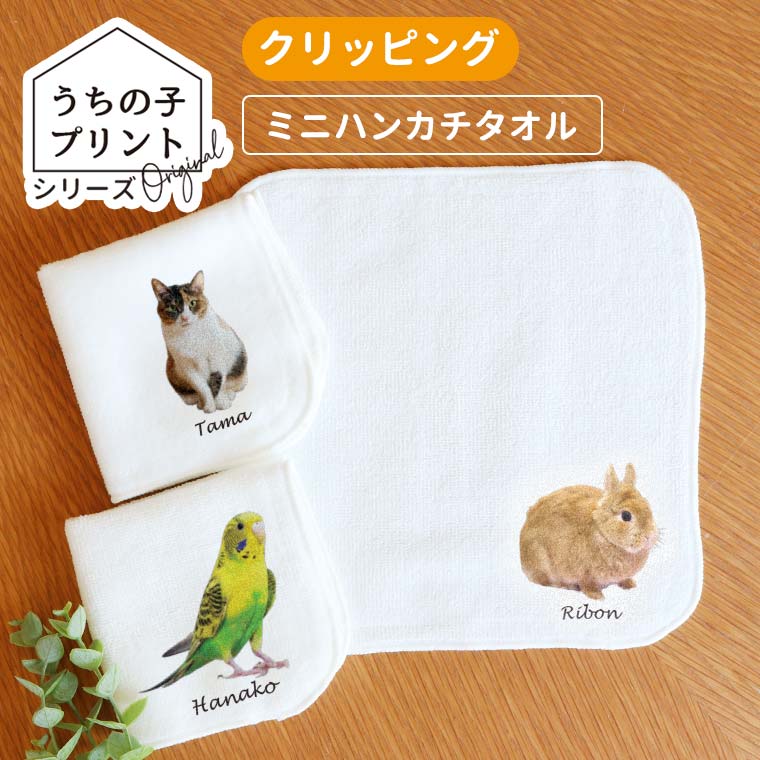 うちの子プリントシリーズ クリッピング ホワイト ミニハンカチタオル 20cm×20cm アンシャンテラボ / ハンドタオル ミニ...