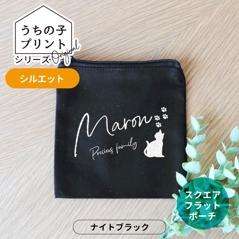 うちの子プリントシリーズ シルエット スクエアスクエアフラットポーチ ナイトブラック アンシャンテラボ / ポーチ オリジナルポー...
